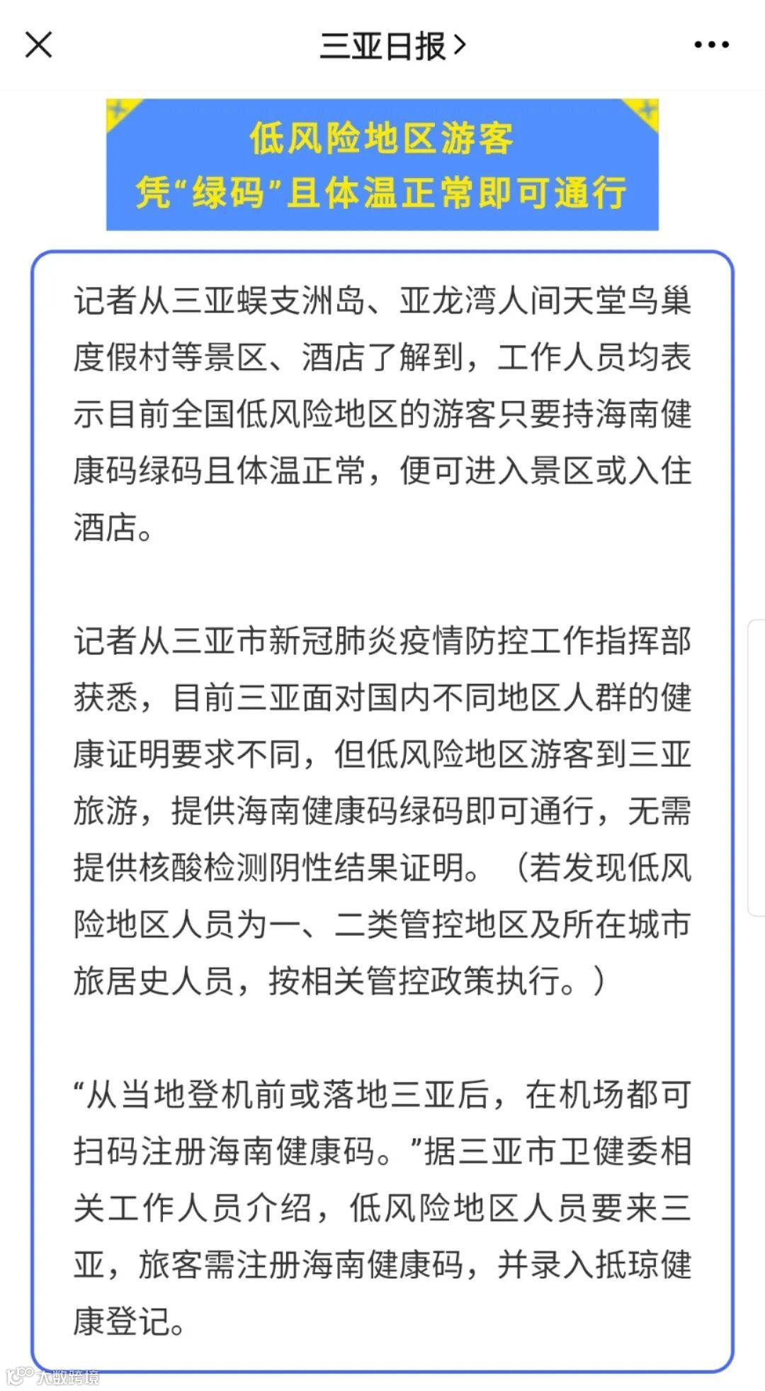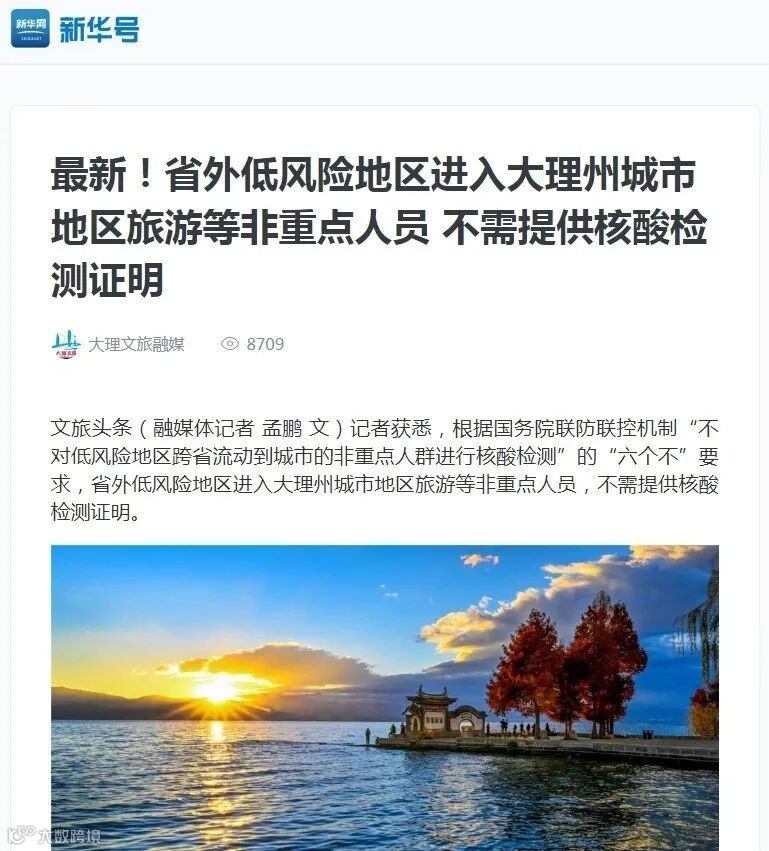 1月31日,三亚率先发文:国内低风险地区来客,不需要核酸检测证明。2月1日,云南大理发文:低风险地区人员到大理,不再要求7天内核酸检测证明。当日晚,四川发布消息泸沽湖景区恢复开放。丽江和长白山政策也逐渐放宽,在整体防疫不放松的情况下,低风险地区游客凭健康绿码和行程绿码即可通行。