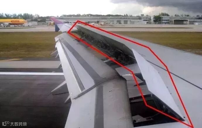 在着陆过程中,扰流板充分打开使飞机减速,扰流板产生的外形阻力直接辅助刹车效果。