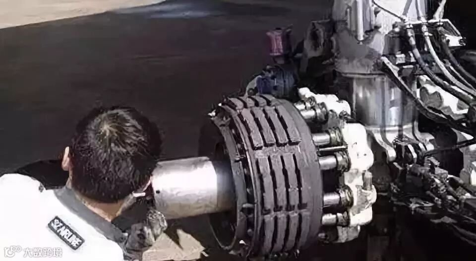 飞机的刹车系统和汽车类似,只是耐热性能要好很多。飞机重量大,普遍使用多片刹车系统,制动时利用液压将动片与静片挤在一起产生制动效果,材料一般是石墨复合材料。