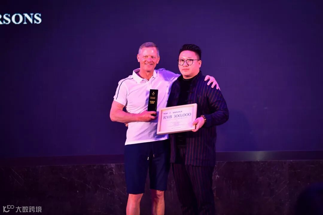 GLOBAL WINGS铂雅公务航空集团创始人兼CEO张洪超先生(右)作为颁奖嘉宾上台颁奖