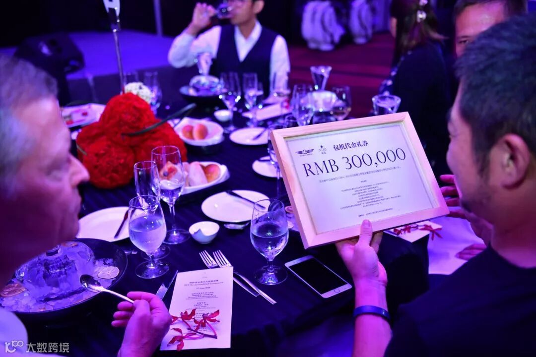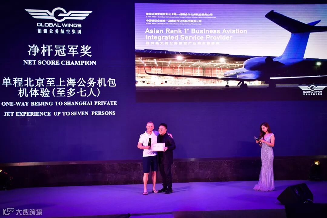 晚宴在诺金酒店举行,GLOBAL WINGS铂雅公务航空集团创始人兼CEO张洪超先生作为本次活动的颁奖嘉宾出席,与现场来宾畅聊换盏,并在抽奖互动环节被幸运抽中。颁奖仪式作为“2018诺金高尔夫球邀请赛“颁奖晚宴的开篇环节,GLOBAL WINGS特别赞助了价值30万元的公务机包机券。随着主持人对这项大奖和对GLOBAL WINGS创始人兼CEO张洪超先生的介绍,该奖项最终花落高尔夫净杆总冠军,张洪超先生上台为嘉宾颁奖。