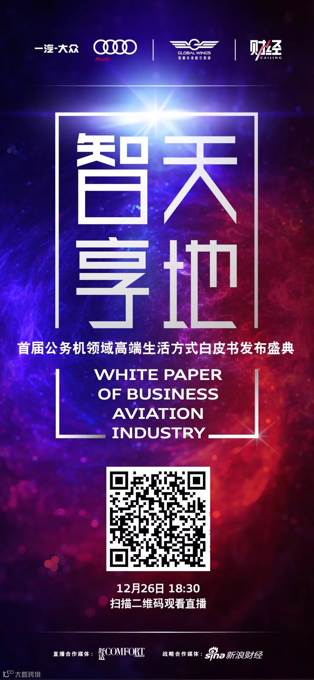 由GLOBAL WINGS 铂雅公务航空集团、一汽-大众奥迪、《财经》杂志联手打造的【智享天地】——首届公务机领域高端生活方式白皮书发布盛典,将在明日(12月26日)北京诺金酒店盛大开启。这不仅仅是一场跨界之旅,更代表了公务航空业一个全新篇章的启航,新概念、新理解、新诠释,未来,像一朵美艳的鲜花,在你我手中炫彩绽放。