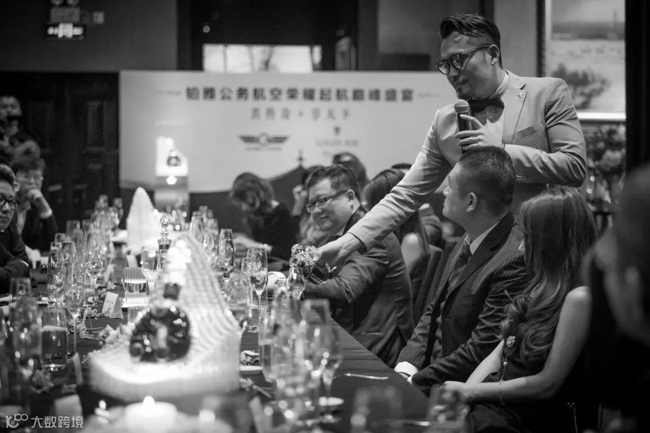 GLOBAL WINGS铂雅公务航空创始总裁张洪超与美国运通中国区董事总经理姜大伟及友人把酒言欢