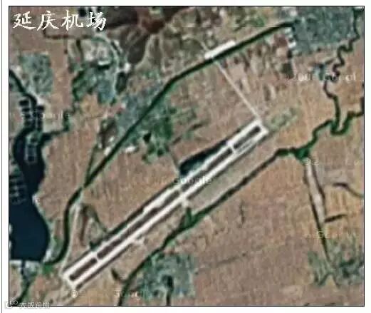 延庆机场,军用,位于延庆县城东边偏北的永宁镇。关于这个机场基本查不到什么资料,只知道是一个军用机场。卫星照片也没有高分辨率的,只能截一张不很清楚的放在这里了。要是都让人知道了,也就不称其为军用了。**师**师*师曾经使用。