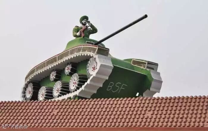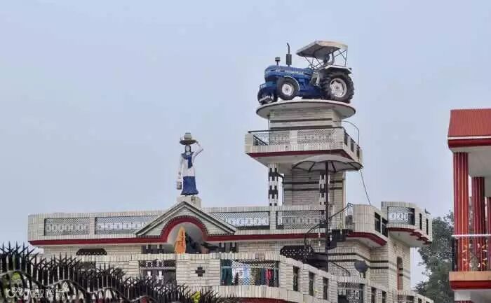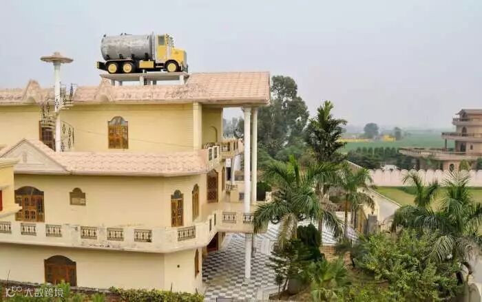 这家直接把坦克扛上了屋顶,不得不说真的好丑,印度有钱人的审美不好理解。