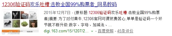层出不穷的图形码有效打击了黄牛和抢票软件,然而也让旅客们泪奔。数据显示,12306网站图形码的数量已经多达581种,按照要输入两个关键词的登录规则,用户将有机会尝试336980道不同验证码题目的机会,而一次性输入正确的仅为8%。而现在,这些图形验证码不仅击败了全国99%的网友,引发全民吐槽,GW小编相信你也是其中一位......