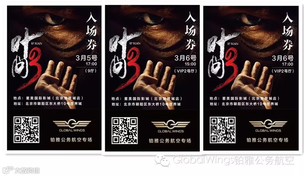 关注Global Wings微信微博的朋友们肯定都知道,《叶问3》3月4日迎来首映。宣传期间,Global Wings有幸为电影主创团队在全国多地的路演活动提供全程公务机服务,并精心打造了公务机上的“叶问之旅”,深受好评。