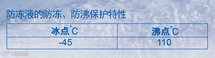 例如我国北方寒冷地区,应选择低冰点、高沸点防冻液,以保证发动机在极端气温下正常工作。