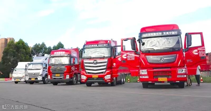 由三辆重卡、两辆轻卡组成的巡展车队