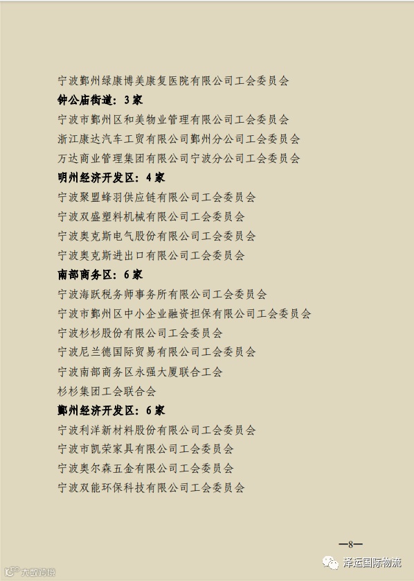 近日,宁波市鄞州区总工会公布了2022 年度宁波市四星级“活力基层工会”名单。宁波泽运国际物流有限公司工会委员会成功通过考核。
