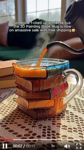 视觉属性强、适配礼品场景的马克杯品类在AI带货中尤为突出。一款3D书籍造型陶瓷杯上线20多天售出超3.82万单,总GMV达59.35万美元(约人民币419.25万元)。其爆火源于一条粉丝不足5000的小号发布的AI视频,通过“书籍杯+热咖啡”的浪漫场景,在7天内斩获1810万播放量。