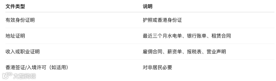 个人账户:护照、海外住址证明、收入证明、签证(如适用)