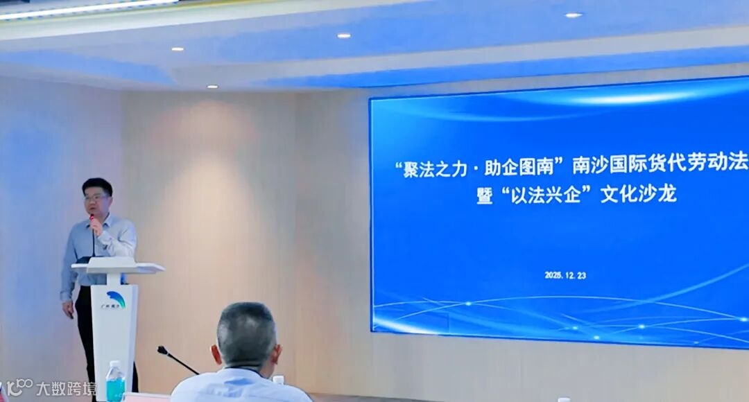 2025年12月23日下午,由广州市南沙区法学会、南沙法律服务集聚区、南沙综合行政执法局牵头,联合中国物流与采购联合会国际货代分会、国际货代信用合作平台(WIFFA)广州口岸、广东金马波士德律师事务所共同举办的“聚法之力·助企图南”国际货代劳动法培训,暨“以法兴企”文化沙龙活动在广州南沙粤港合作咨询委员会服务中心会议室胜利举行。本次活动高度聚焦国际货运代理行业用工合规化需求,精准提升货代企业劳动用工的管理水平及合规化操作,助力南沙自贸片区乃至广州地区法治化营商环境建设。