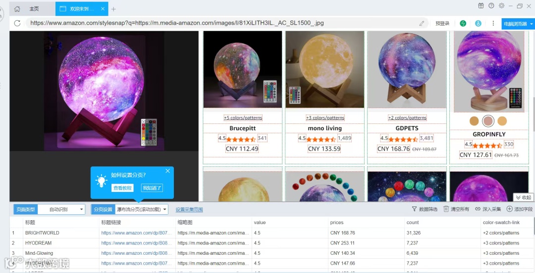 可以多找几张同款产品的图片链接交叉查询竞品asin,然后去重