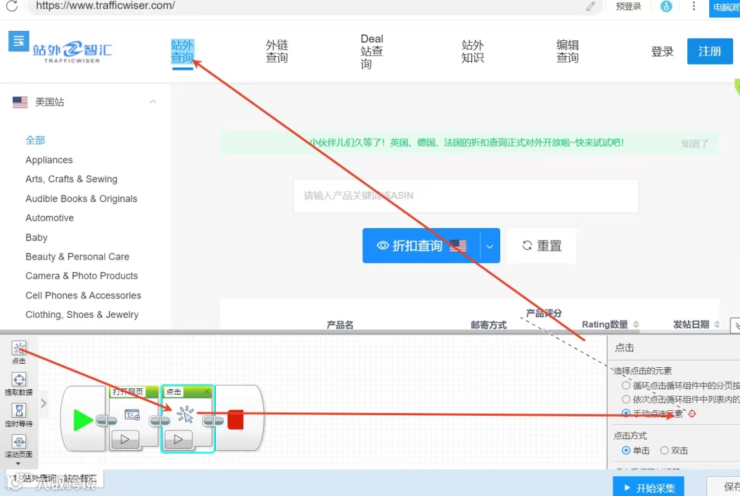 1,规划采集流程的时候可以先手动点一遍,熟悉哪个步骤需要做什么,然后按照流程去设计