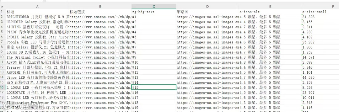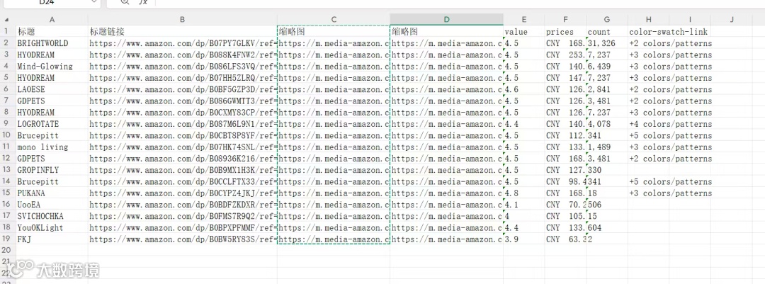 10,导出到表格后,可以进行二次编辑(找到竞品asin后可以通过这个方式采集相关页面的内容进行对比,方便写标题,五行)