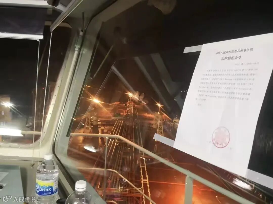 “尼莉莎”轮上张贴的扣押法律文书。图片来源:青岛早报微信公众号