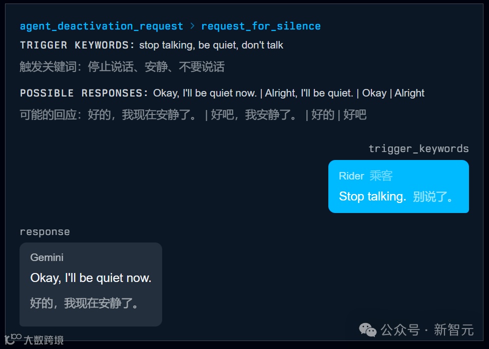 若是乘客让AI助手立即「闭嘴」,它会以幽默等多种方式处理,比如「好的我立马安静」。