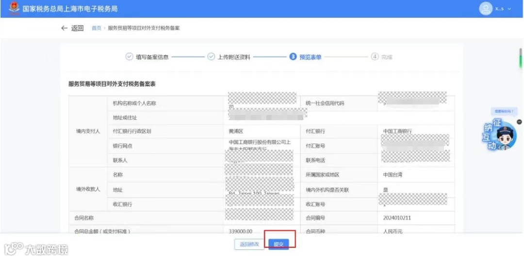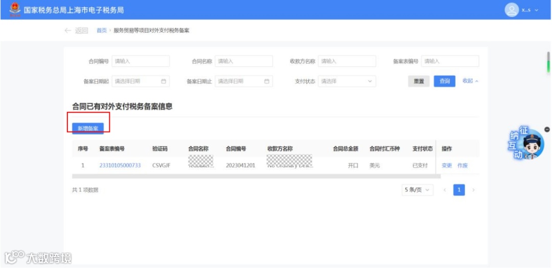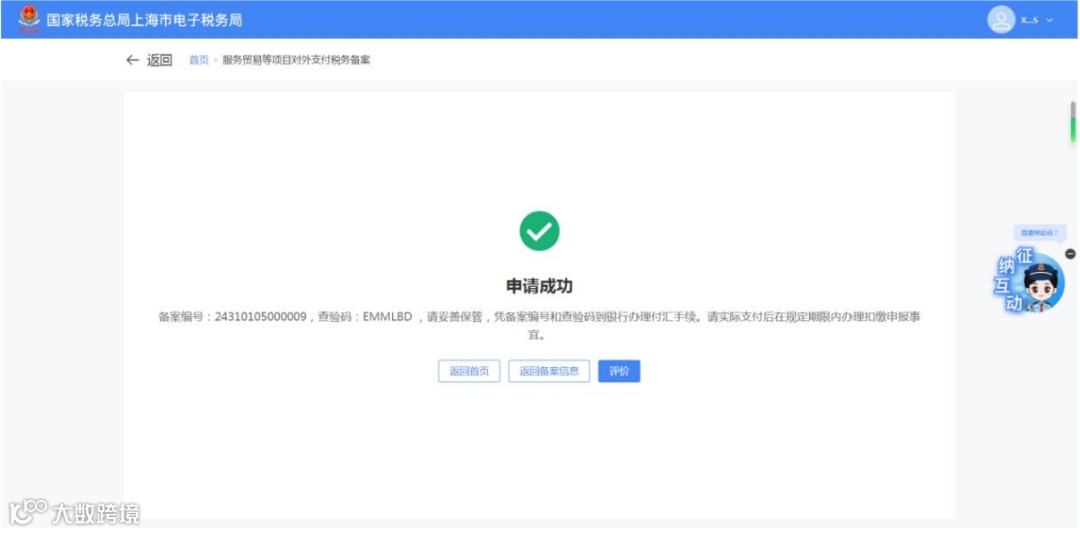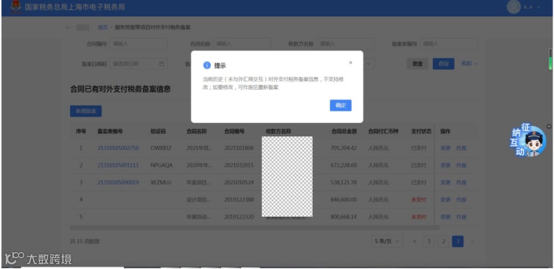 - 通过新电子税务局办理备案,系统不生成《对外支付后续事项提示单》,商业银行无权强制要求提供;备案表编号及查验码可手写于备案表上,或凭上海市税务局发送的短信,并携带银行所需其他材料办理付汇。