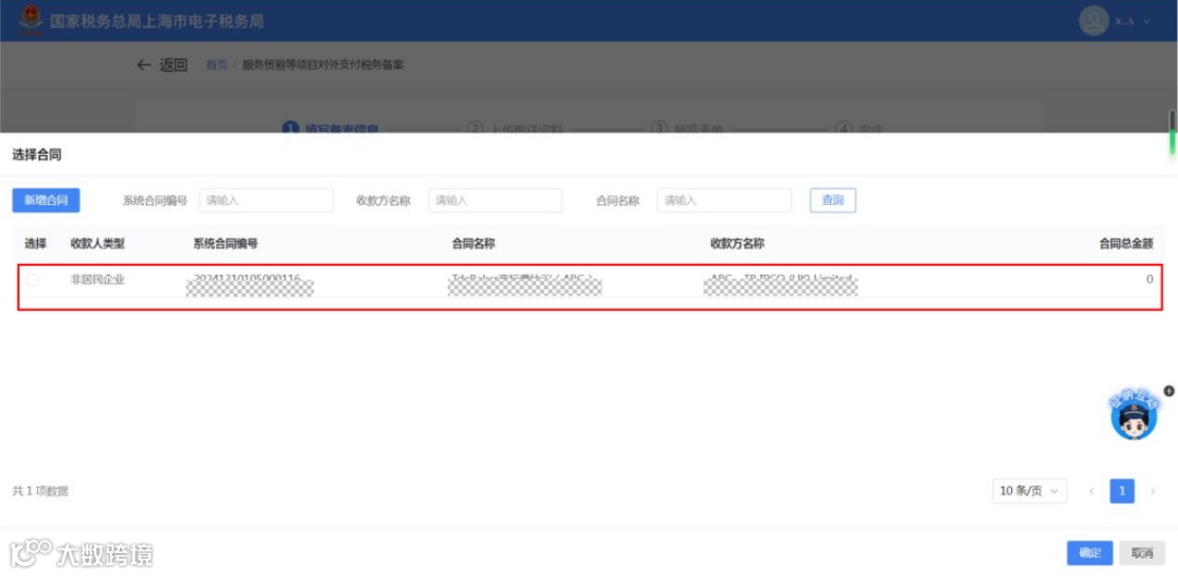 - 选择已签订的对外支付合同;无合同的,可点击“新增合同”补录;