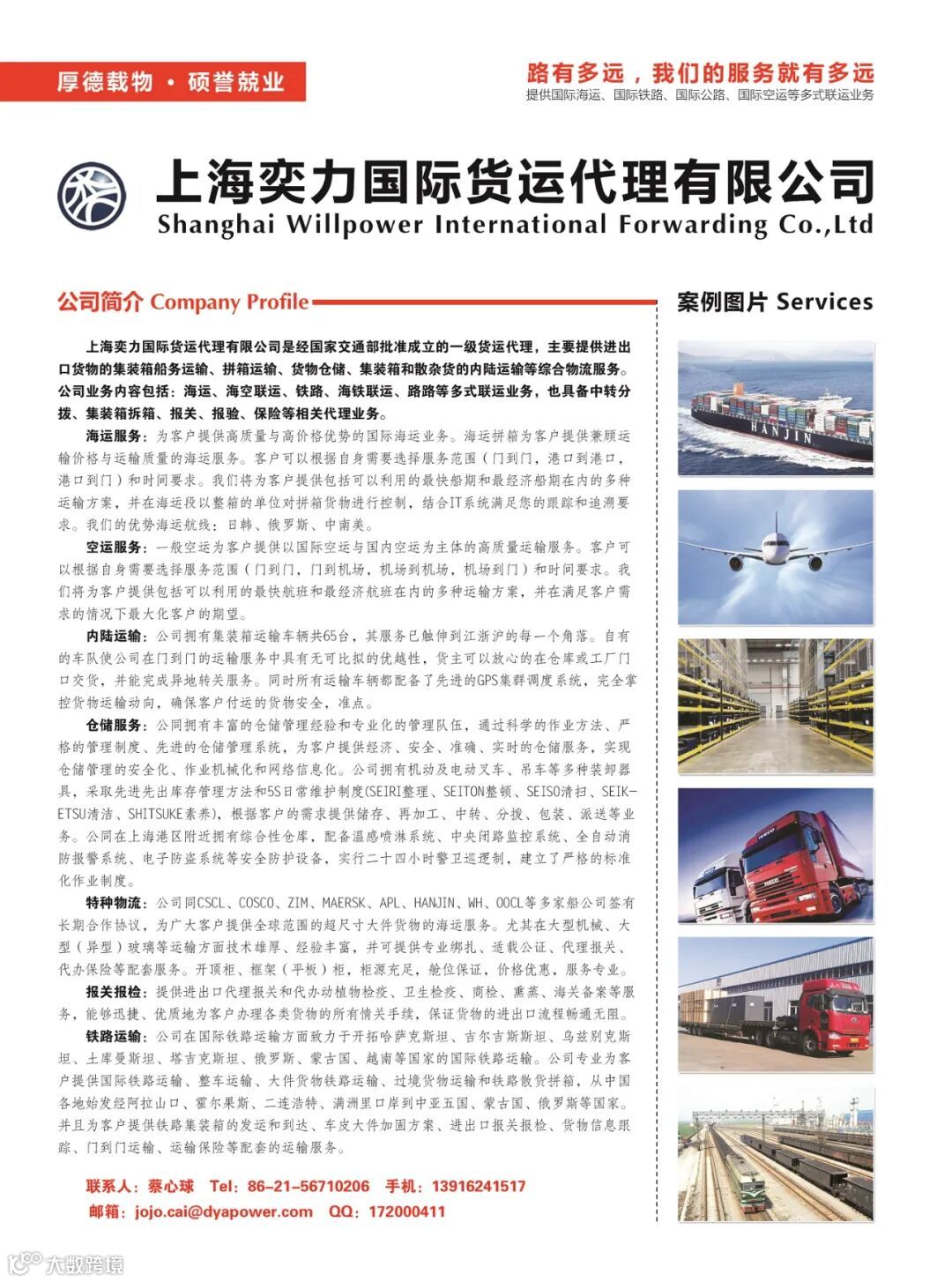 上海奕力国际货运代理有限公司是经国家交通部批准成立的一级货运代理企业,专注于提供进出口货物的集装箱海运、拼箱运输、仓储管理及内陆运输等综合物流服务。公司业务涵盖海运、空运、铁路、海铁联运、陆路运输等多种多式联运模式,同时具备报关、报检、保险、中转分拨、集装箱拆装箱等相关代理能力。