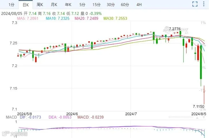 而今晨(8月5日),人民币涨势延续,离岸人民币对美元汇率接连升破7.16、7.15、7.14、7.13和7.12关口,离岸人民币对美元汇率最高升至7.1124,较前一交易日升值超500点,创下1月2日以来新高。