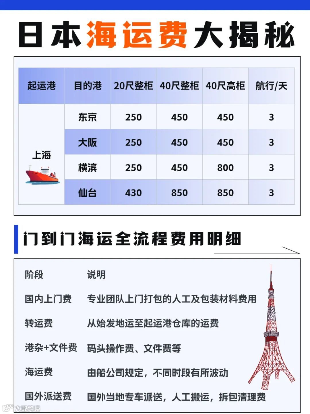 📍上海 → 东京 20'柜:$250 | 40'柜:$450 | 40'高柜:$450