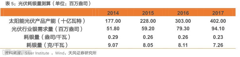 随着光伏行业技术的进步,成本继续下行,平价项目爆发式增长是大趋势。 之前我们分析到电池生产中白银负载量进一步降低的可能性存在“ 物理限制” ,那么在光伏平价项目爆发的时点,就是白银工业需求再次腾飞的起点。