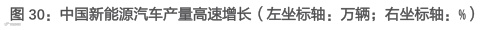 作为新能源汽车全球第一大市场,中国的新能源汽车销量维持着高速增长的态势。2018年初至 11 月份实现新能源汽车产量 97.5 万辆(同比增长 74.73%)仅仅占国内汽车总产量的 4.57%,依旧有着充足的增长空间。
