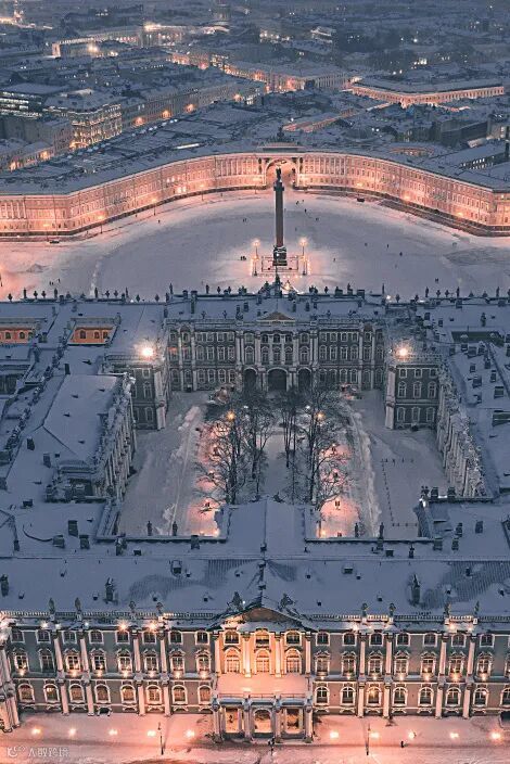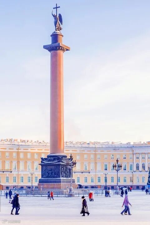 ◎左:冬宫广场上矗立着47米高的亚历山大柱