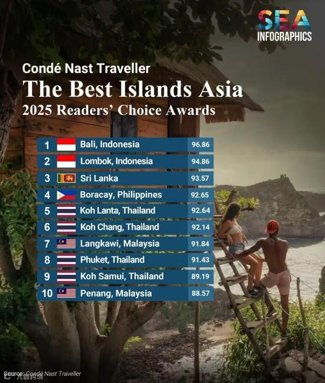 《康泰纳仕旅行者》最新发布的2025年度“读者之选”榜单中,斯里兰卡荣登亚洲十大岛屿第三名