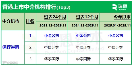 就今年前十一个月排名前十位的保荐人分别是: