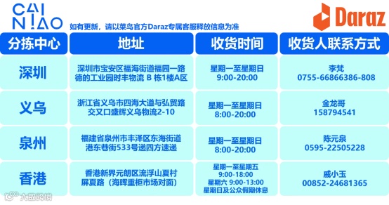 Daraz官方物流由菜鸟国际承接。商家需在订单生成后5日内将包裹送至菜鸟国内集货仓,后续由菜鸟与Daraz Express完成末端配送。商家可通过后台追踪物流状态,并在菜鸟系统中结算运费。建议账户预存不低于1000元用于自动扣费。