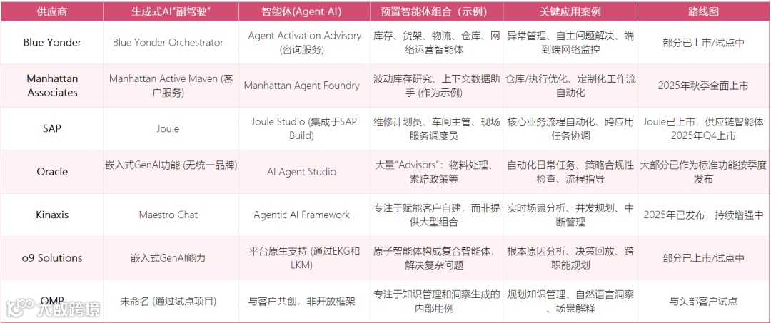 要深刻理解各厂商的AI战略,必须认识到软件行业正在发生一场根本性的技术范式转移。AI不仅仅是现有系统的一个附加功能,它是催化剂,正在重塑企业软件的底层架构。所有系统都在从记录系统到智能系统的演进,已成为不可逆转的趋势。作为对于趋势的回应,各大供应链解决方案提供商正以前所未有的速度和投资,将AI,特别是生成式AI和AI智能体(Agentic AI),嵌入其产品组合的核心。本文对七家关键供应商:Blue Yonder、Manhattan Associates、SAP、Oracle、Kinaxis、o9 Solutions和OMP的AI战略、产品路线图和技术基础进行了深入、详尽的分析。