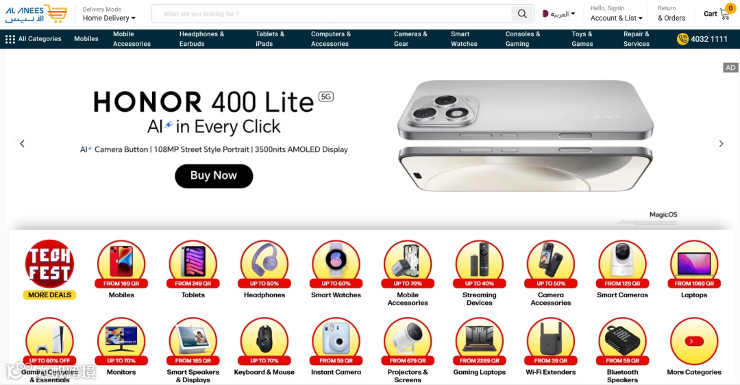 作为本土电商平台,Alanees Qatar月均访问量约200万,专注阿拉伯传统服饰、家居装饰及本地特色商品,定位中高端市场。通过线上线下融合模式,提供刺绣服装、手工制品等定制服务,强化文化认同与用户粘性。