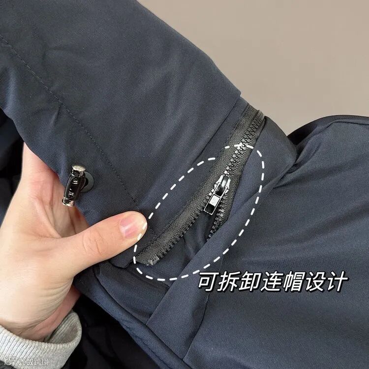 细节实拍: 🔺防风门襟,保暖又美观 🔺可拆卸连帽款,一衣两穿,帽子卸下来就是一款干练的立领外套