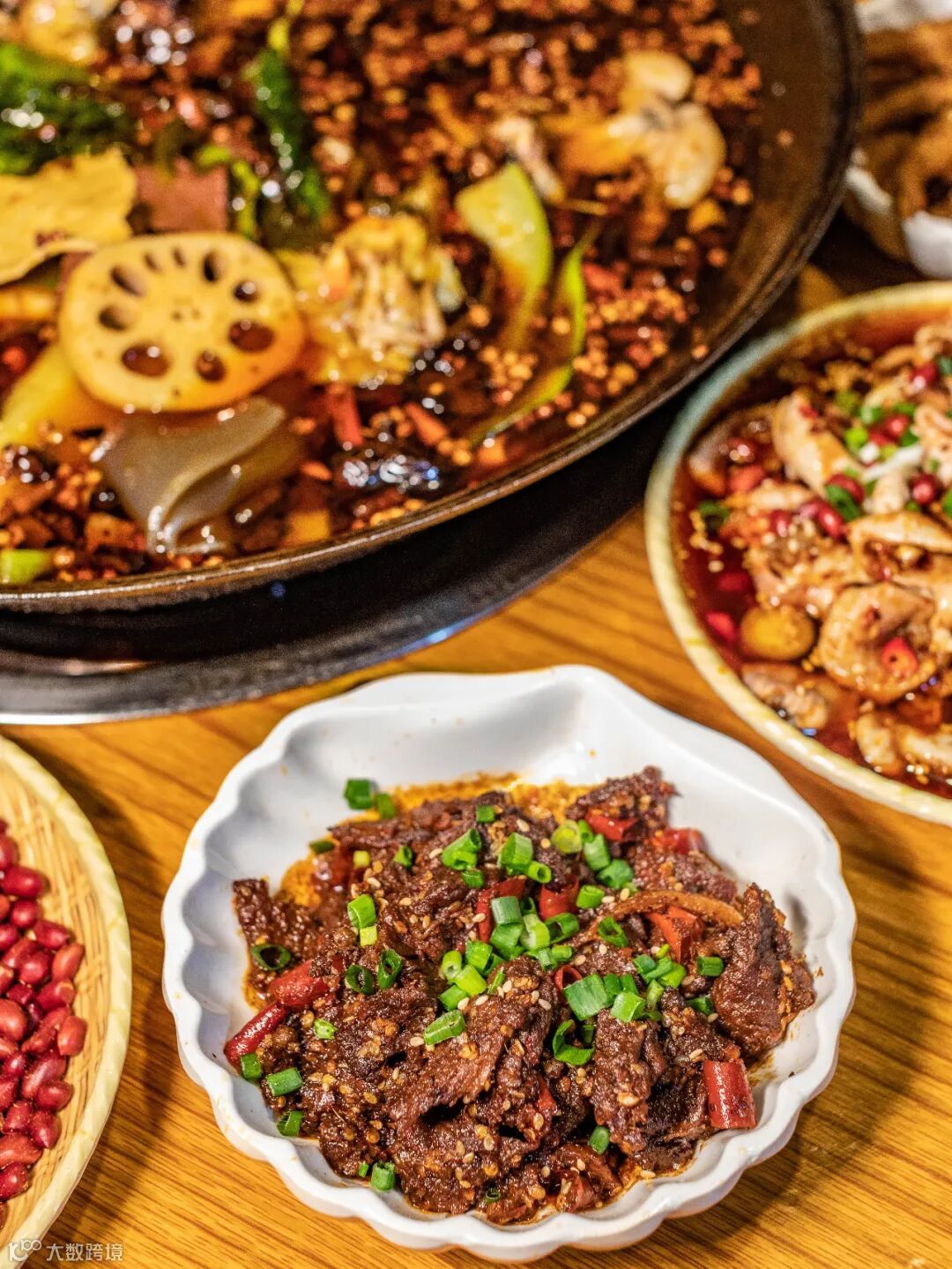 店里的三道招牌菜分别是「口水鸡」「椒麻兔」「双椒鱼」,独特的配方,不同的烹饪手法,使其色泽鲜艳、口味诱人,味道也各有千秋。就拿其中「双椒鱼」来说,鱼非常入味,泡椒十足的酸辣味加上油泼过大蒜的香气混合在一起,非常好吃。而且每道菜都装在超大的盘子里,性价比超高!