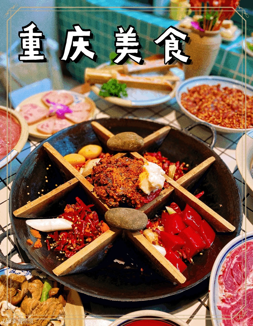 火锅、陈麻花、棒棒鸡、串串香、酸辣粉、山城小汤圆、红油抄手、钟水饺、赖汤圆、糍粑、毛血旺、水煮鱼、烤脑花、辣子鸡、油茶、干锅、蹄花汤、钵钵鸡、芋儿鸡、荤豆花、柴火鸡、梁山鸡、唐肥肠、爬爬虾、南山泉水鸡......