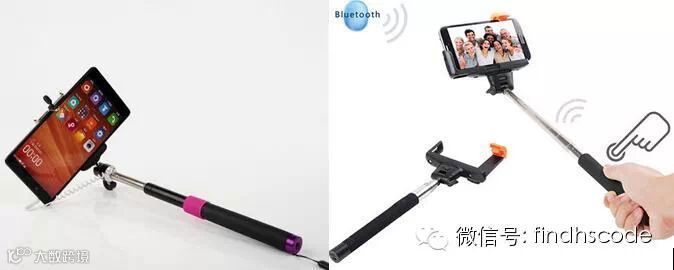 图 3 “一体式自拍杆”(左:有线式 右:无线式)