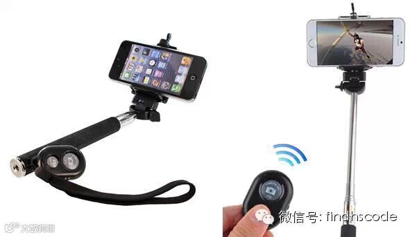 所谓“自拍杆”(英译:selfie stick)是一种可以将智能手机或相机固定在超越手臂正常范围的棒端从而支持“自拍”的一种“独脚架”(图 2)。