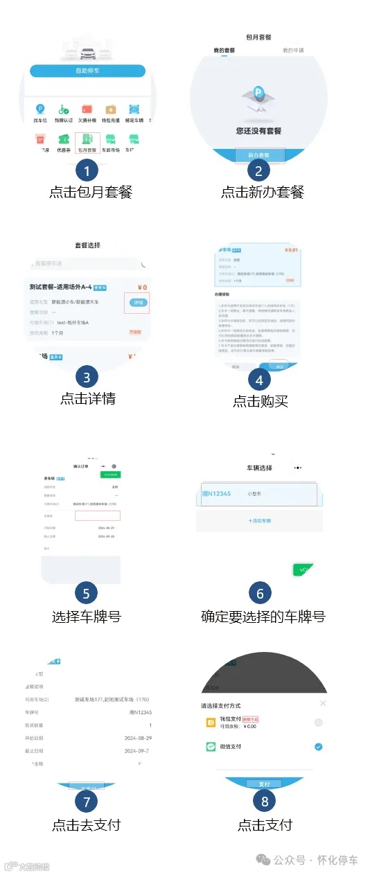 注:车主办理月(年)卡时,注意选择正确的车牌、车型、生效时间避免产生错误,导致系统无法正常识别产生多余停车费用!