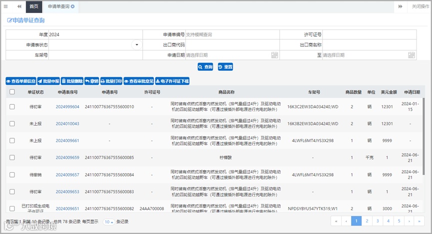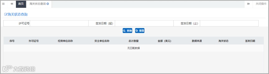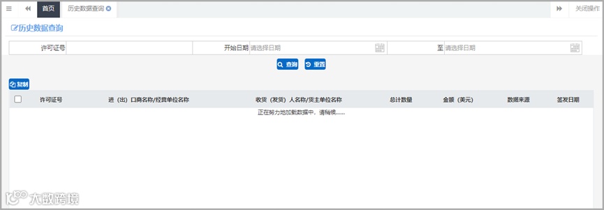 申请单证、历史数据、海关状态、核销数据等数据查询与管理;业务统计