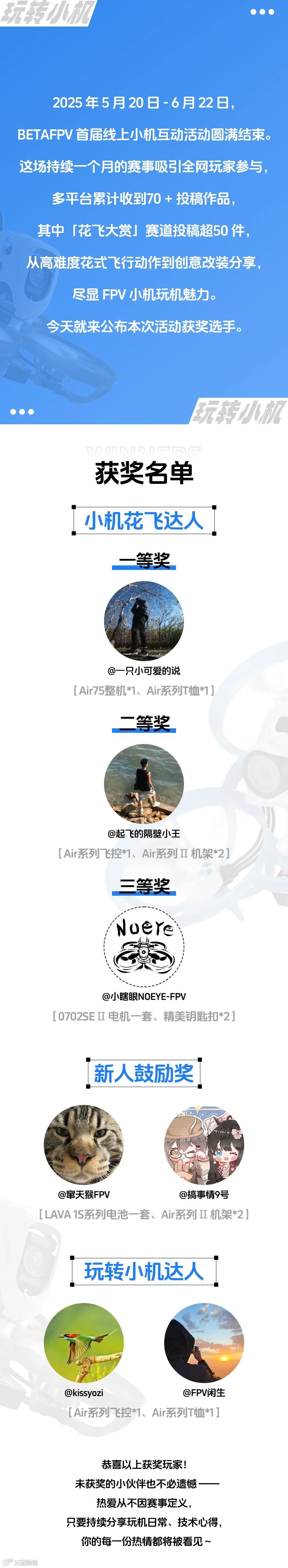 获奖公布 | 花飞大赏、玩转小机达人1.0线上活动