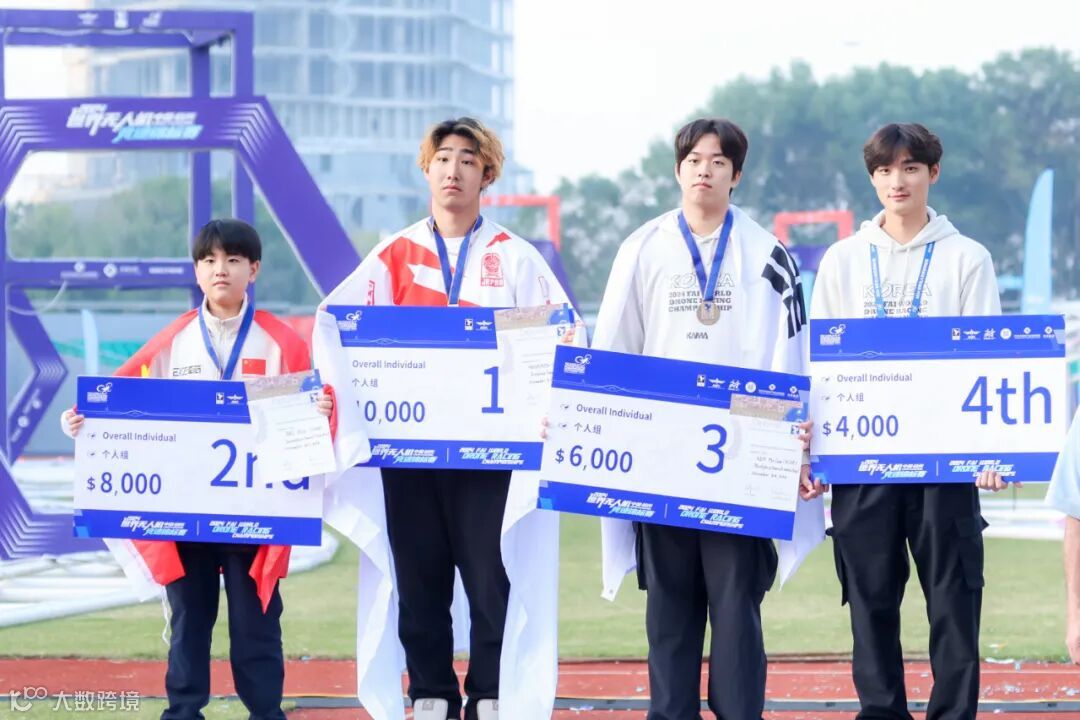 本场比赛,中国国家队以团体第二的好成绩刷新我国在FAI无人机世锦赛中的最高记录,位列第一和第三名的分别是韩国队和日本队。同时也让我们恭喜,国家队最年轻小将,白熙泽一路过关斩将,凭借着惊人的实力和过硬的心理素质,决赛中在两大顶尖韩国选手(MCK、MJK)皆连因操作失误而炸机后,依旧保持着稳定的飞行姿态,顺利完赛,夺得第二!本次比赛也让大家见证了新时代的王者,非常巧合的是个人榜与青少年榜的前三名重合,它们分别是: