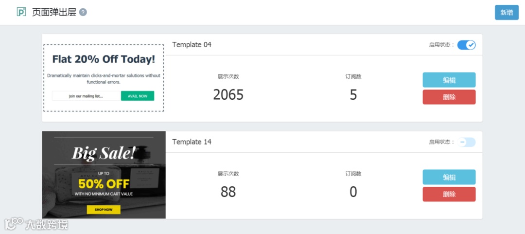 3. 内置可视化数据报告,实时查看弹窗展示次数与用户订阅数量。如图所示: