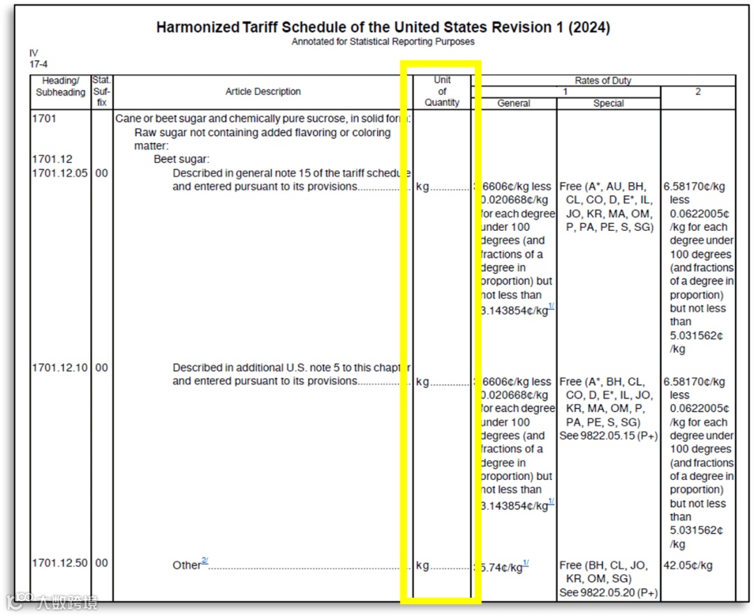 - 数量单位栏:标明报关时使用的数量单位,用于制定贸易数据和征收关税。