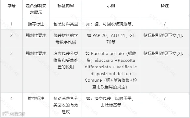 根据意大利包装法规定,自2023年1月1日起,销售给意大利消费者的所有商品,商品包装必须贴标,确保消费者了解相应信息: