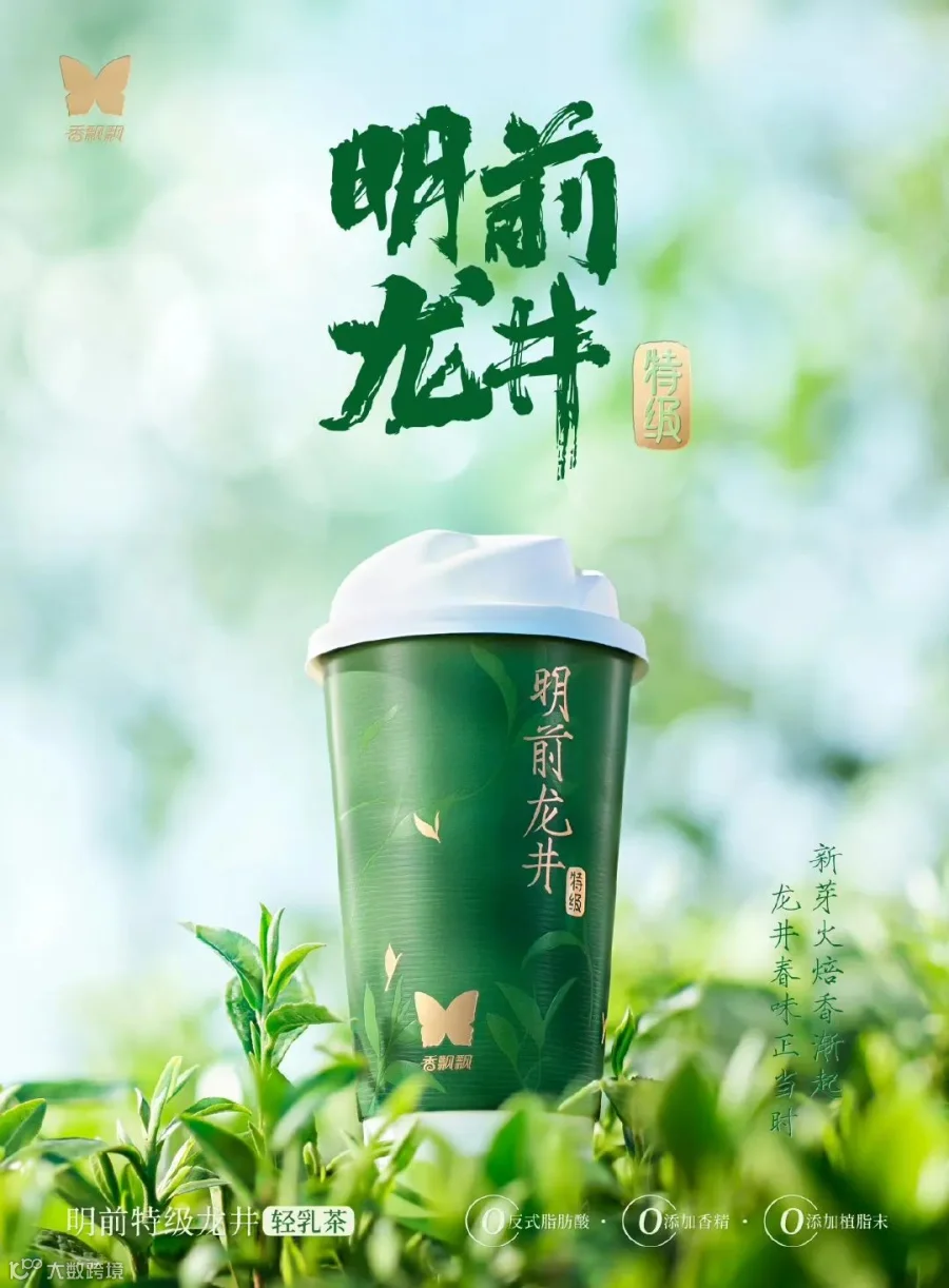 这次在成都线下店限时售卖的一款明前特级明前龙井轻乳茶,随后也出现在了香飘飘的各大电商平台中。