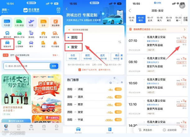 打开巴士管家APP或微信小程序,点击主页城际拼车,选择上下车点及合适的日期班次即可购票。