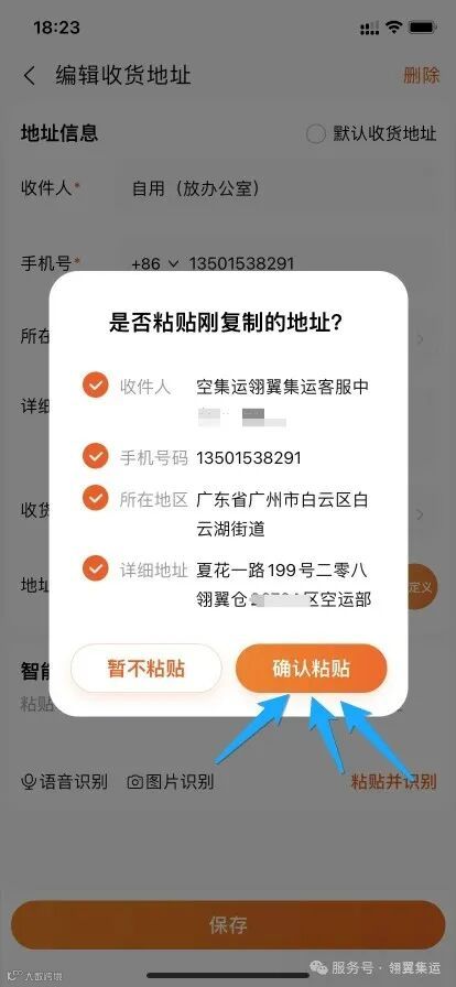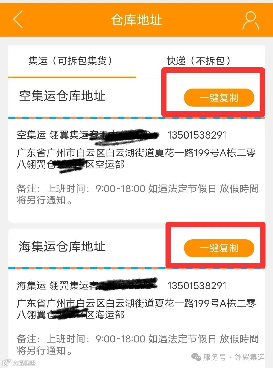 点击“一键复制”,将需集运的货物发往对于地址